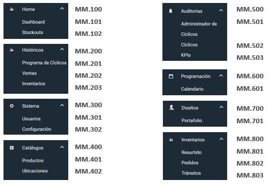 Menús principales (Objetivo y nomenclatura)
