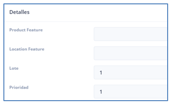 Para definir un lote general para todos los productos se indica el número de piezas contenidas en el lote y se dejan los atributos del producto y ubicación en blanco. Al ser el primer lote general, la prioridad es de 1.