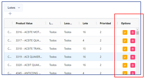 Editar o borrar Lotes